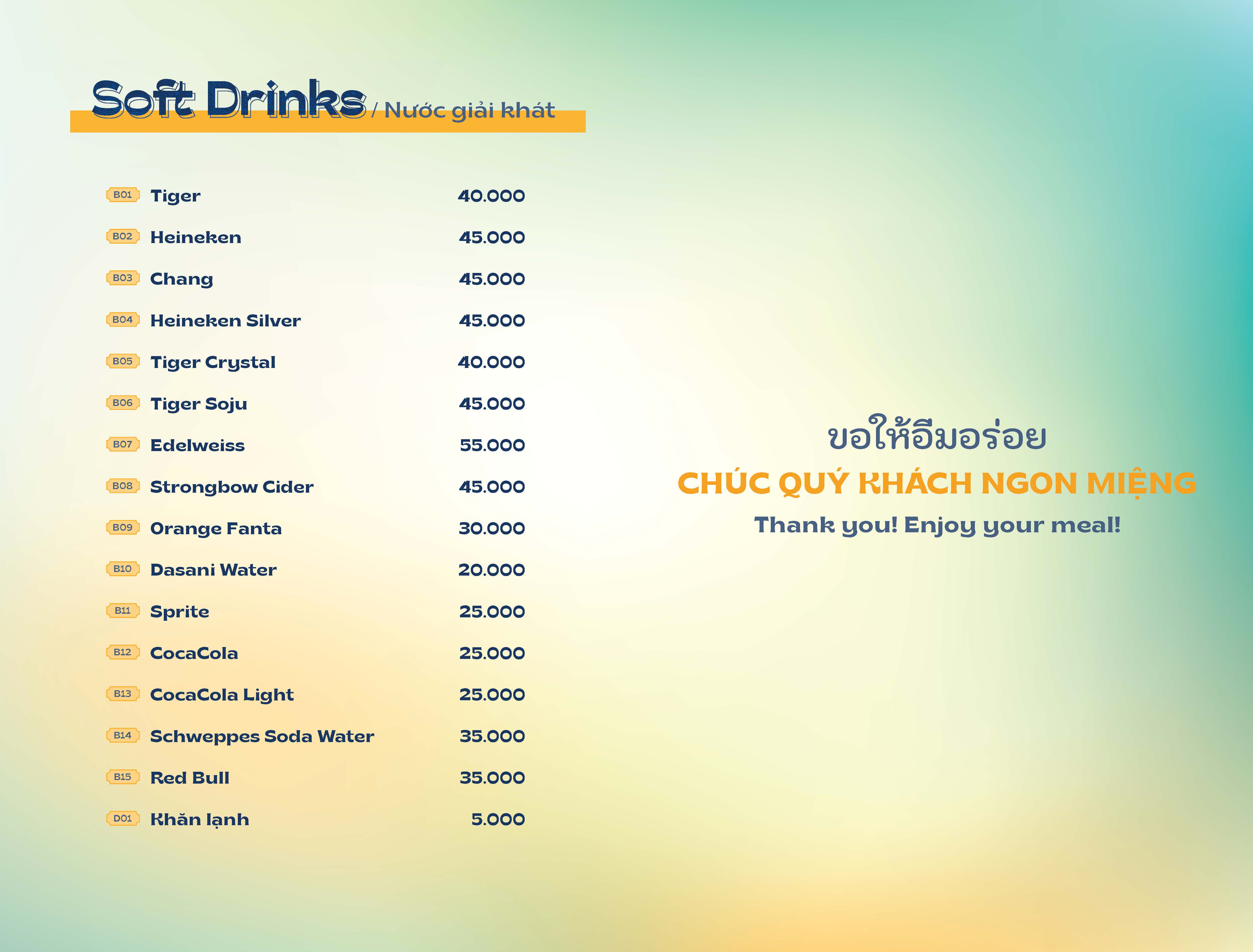 - Giá menu đã bao gồm VAT1. Quy định về đặt cọc: Có, cụ thể như sau: