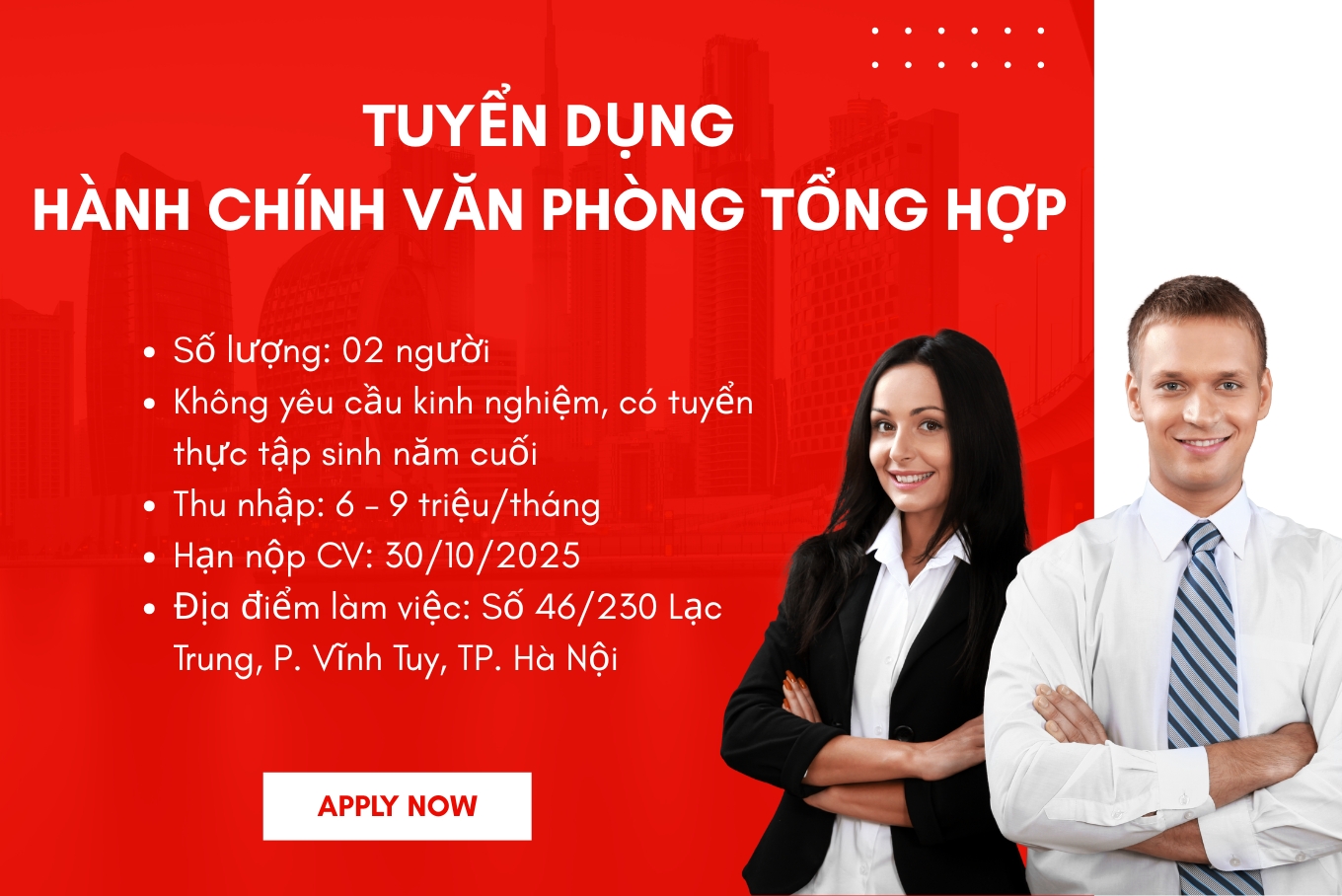 Lưu ý: Tiêu đề thư ghi rõ: [Ứng tuyển HCVP Tổng Hợp + Họ tên]